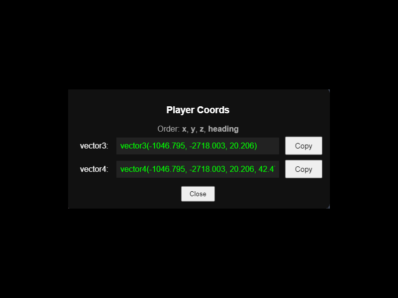 Use the/scoordscommand to instantly display your current position and heading in vector4 format (x, y, z, heading). - Vector3 and Vector4 Output: